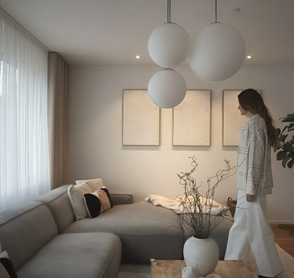 Wir unterstützen Sie dabei, Ihr Zuhause stilvoll weiterzuentwickeln – mit einem klaren Blick für Farben, Materialien und harmonische Proportionen. Unser Ziel ist es, vorhandene Räume nicht neu zu erfinden, sondern weiterzuveredeln, sodass sie warm, authentisch und persönlich wirken. Dabei achten wir auf jedes Detail und kreieren ein stimmiges Gesamtbild, das Ruhe, Eleganz und Funktionalität vereint.